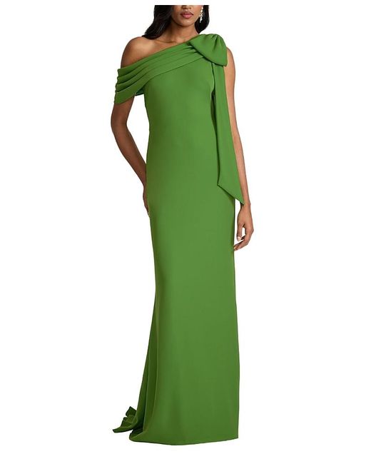 Women's Green Cassia Bow-Shoulder Crepe Gown