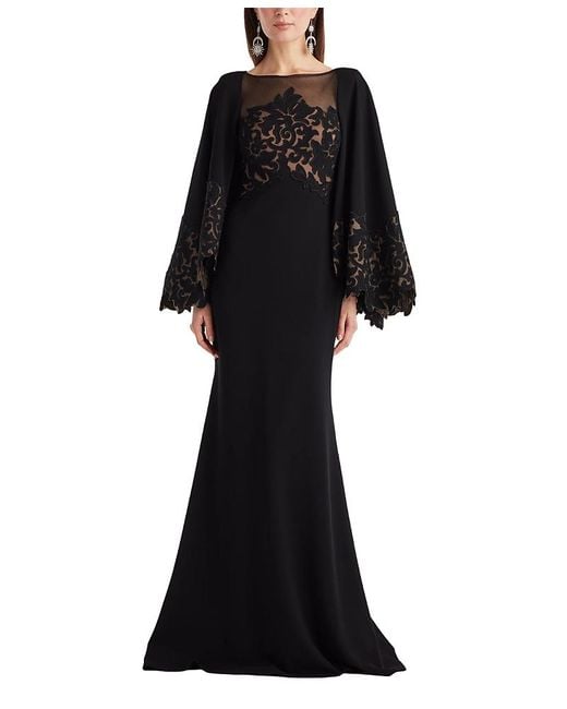 Women's Black Delgado Laser-Cut Capelet Gown