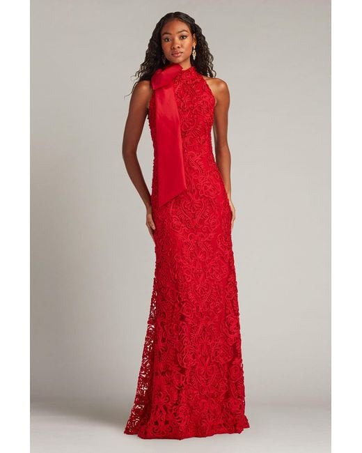 Women's Red Iria Shoulder Bow Lace Halter Gown-Chery