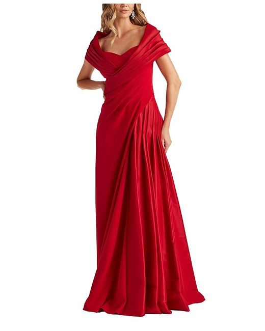 Women's Red Milica Draped Portrait Collar Gown