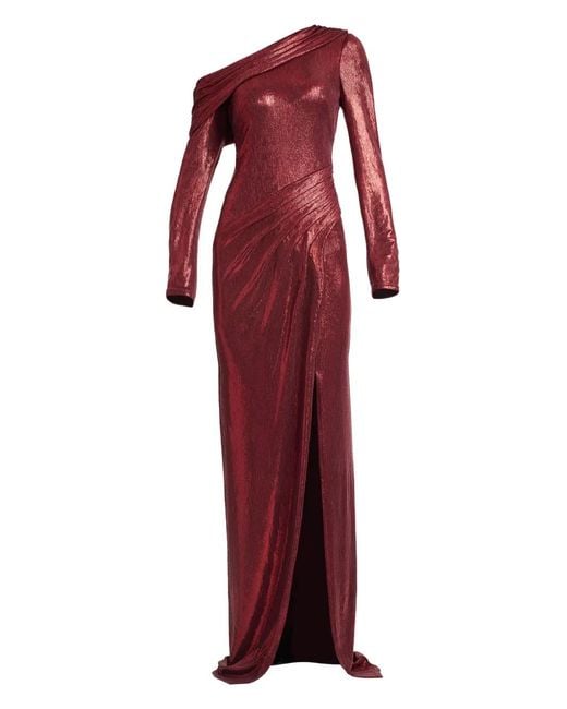 Women's Red One-Shoulder Slit Maxi Dress