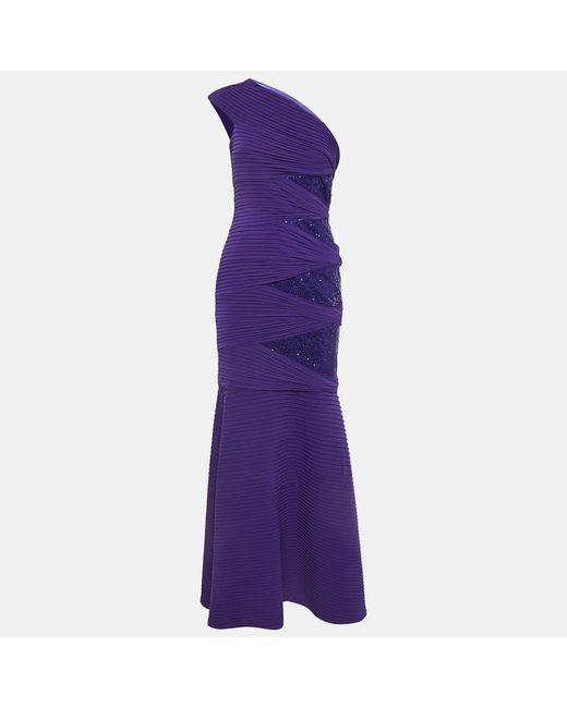 Women's Purple Pintuck Jersey Sequin Detail One Shoulder Gown