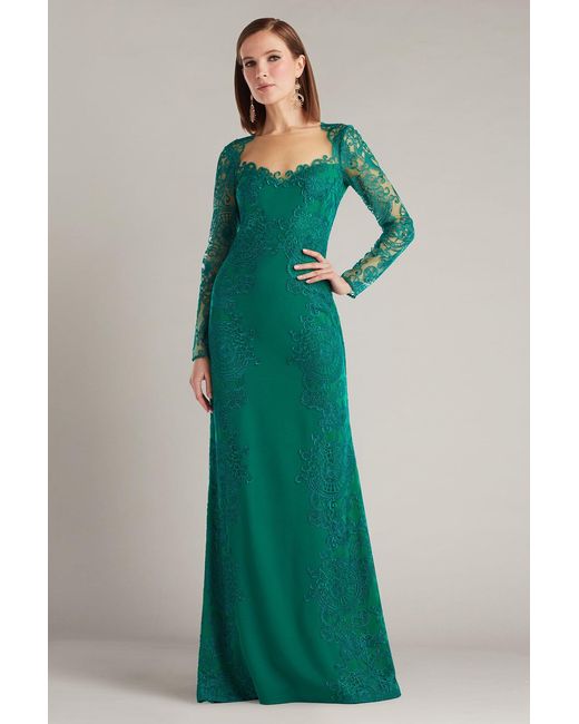 Women's Green Regal Embroidered Timepiece Lace Gown-Emera