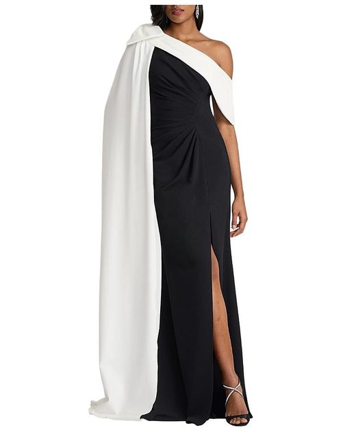 Women's Blue Romi One-Shoulder Bow Cape Gown