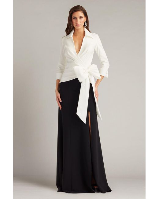 - Sarma Wrap Bow Gown-Wh/Bk