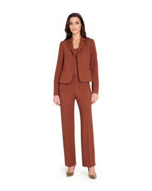 Women's Red Notch Collar Short Jacket Patch Pockets Flare Pants Regular Petite