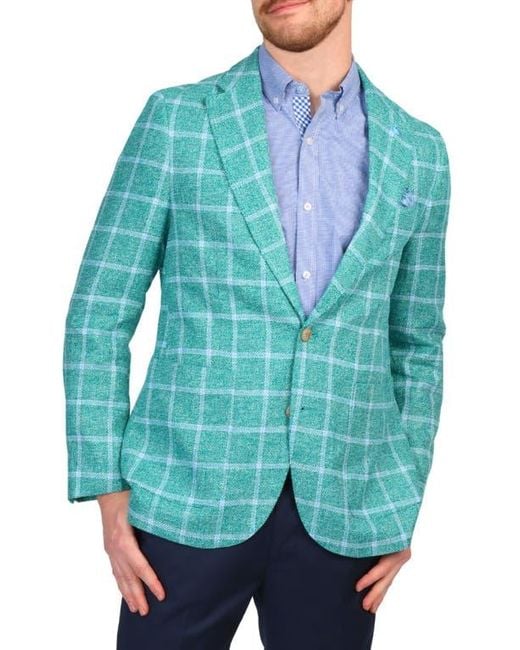 Men's Blue Textured Yarn Dye Windowpane Sport Coat