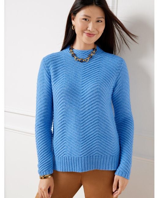 Chunky cable stitching. Ultra comfortable mockneck. This sublimely soft sweater is simply a must-have for the season. Acrylic/Polyester/Nylon. Color: blue
