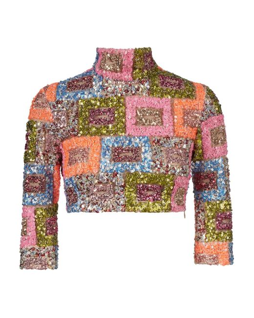 Multicolor sequin embellishment three-quarter sleeves cropped length Size: 40. Gender: Female. Material:Polyester. Color: red