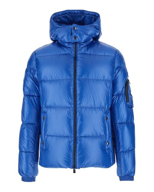 Men's Blue 'Belbo' Down Jacket With Fixed Hood And Logo Patch On The