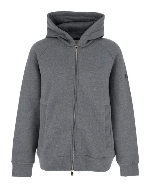 Men's Gray Logo-Patch Zip-Fastening Hoodie