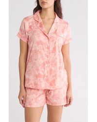 Go to Nordstrom RackBlossom while you sleep in these shortie pajamas that pair a menswear-inspired shirt and matching shorts covered in a pressed flower print. Top has notch lapel, short sleeves, and front patch pocket Bottom
