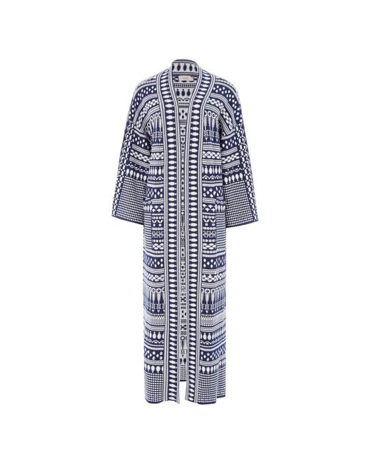Women's Blue Patterned Knit Coat