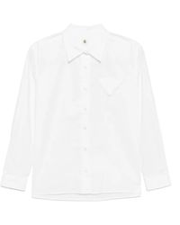 Go to FARFETCHBlue cotton blend frayed pocket button fastening long sleeves classic collar Size: 12. Gender: Female. Material:Polyester/Cotton/Elastane. Color: blue