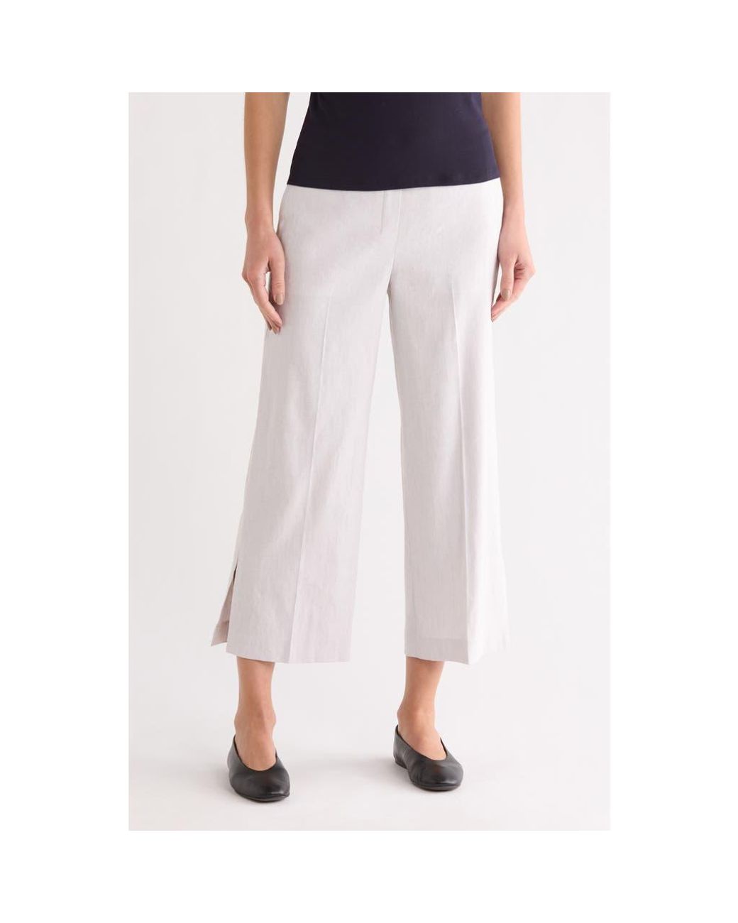 A flowy wide leg and an elastic waist further the casually cool attitude of these pull-on pants that are right for work and play. 25" inseam; 10 1/2" front rise (size 4) Elastic waist 63% linen, 35% viscose, 2% elastane Dry clean Imported Color: white
