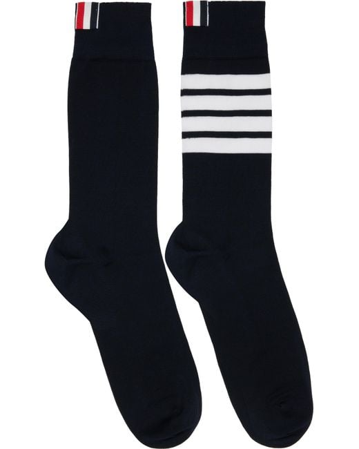 Men's Black Cotton 4-Bar Mid Calf Socks