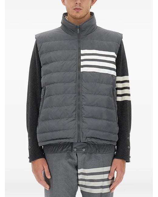 Men's Gray Padded Vest With High Collar And Signature Stripes