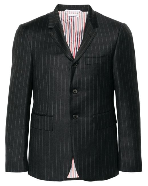 Black Pinstriped Wool Blazer - Men's - Cupro/wool