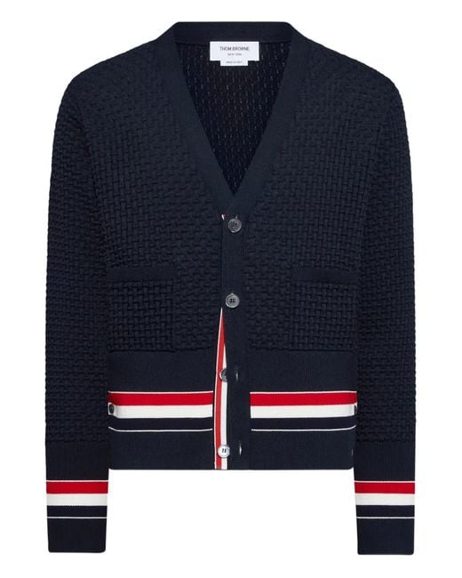 Rwb Stripe V-Neck Knitted Cardigan - Blue