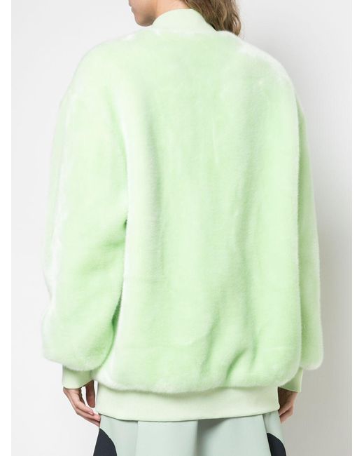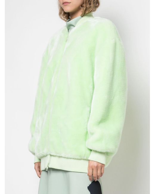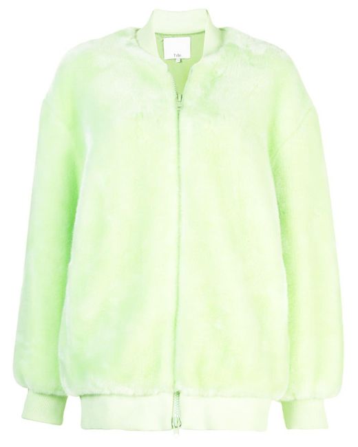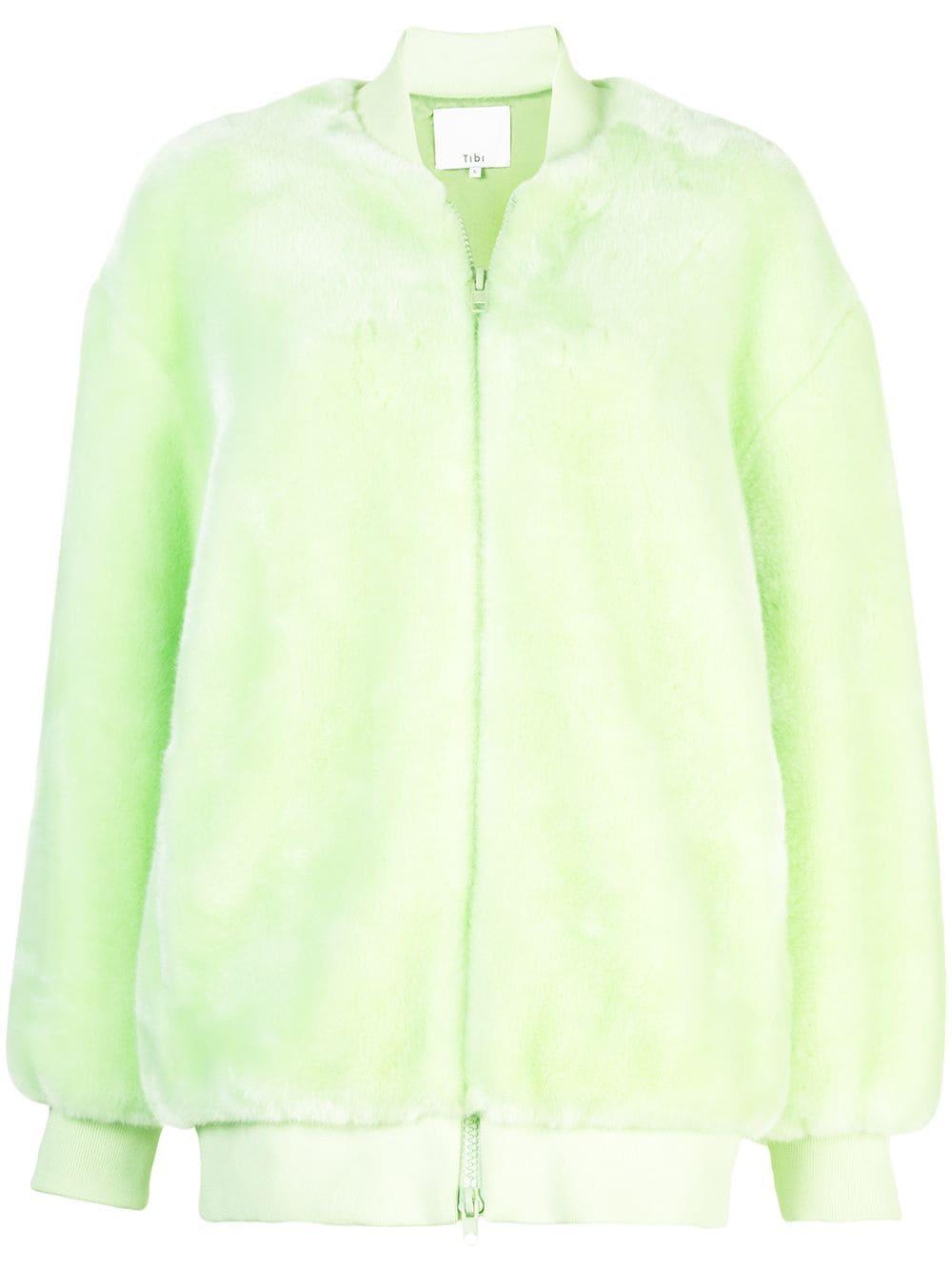 Founded in the designer's Soho loft, Tibi epitomises the effortlessly cool and carefree attitude of downtown Manhattanites. As seen in this mint faux fur track jacket featuring a front zip fastening, two front pockets, long ribbed sleeves, a ribbed hem, an oversized fit and a ribbed collar. Material:Acetate. Color: green