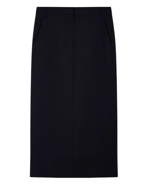 Navy blue midi length straight hem side pockets center back vent Size: 2. Gender: Female. Material:Polyester/Wool/Elastane. Color: blue