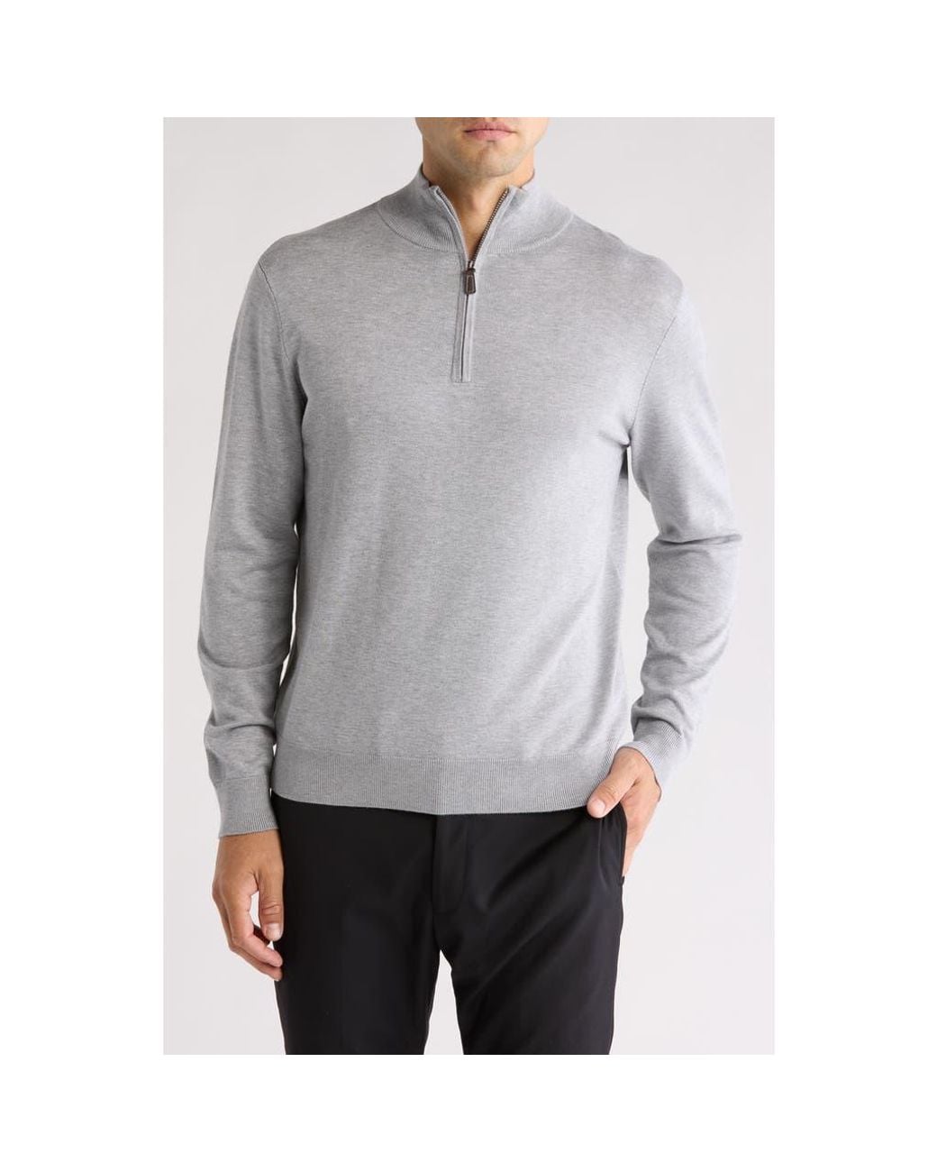 Men's Gray Solid Quarter Zip Pullover