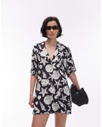 Go to ASOSJumpsuits & Playsuits by Topshop Co-ordinating made easy Animal print V-neck Fixed straps Button placket Regular fit Color: brown