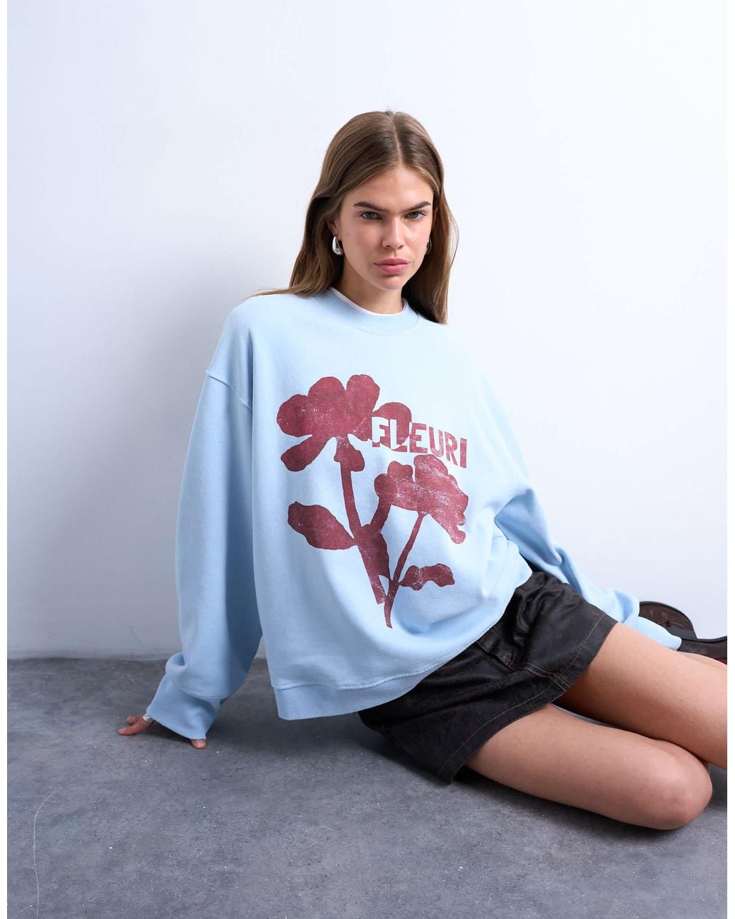 Hoodies & Sweatshirts by Topshop This oversized sweatshirt features a classic crew neck, long sleeves and a graphic floral print. Cotton. Color: blue