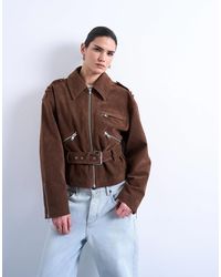 TOPSHOP Women's Black Low Belted Biker Jacket