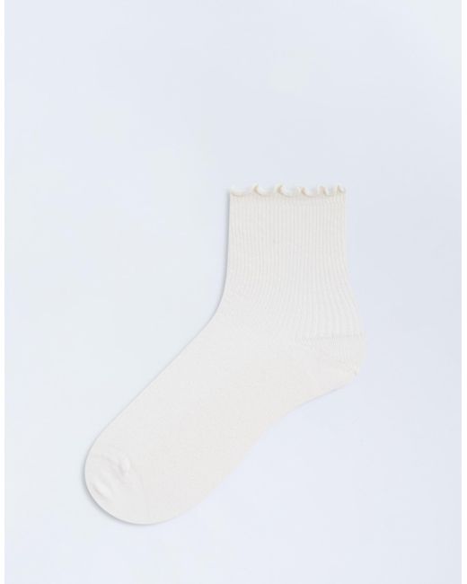 Ribbed Frill Socks - White