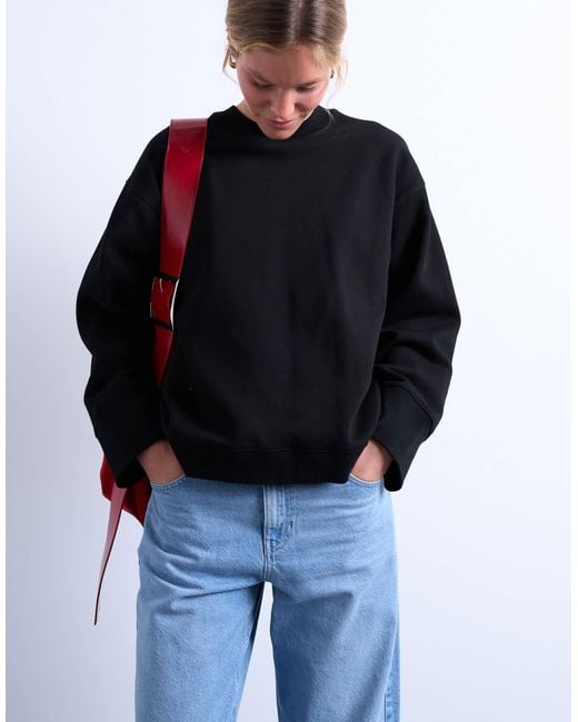 Hoodies & Sweatshirts by Topshop This sweatshirt is crafted from soft, stretchy jersey and features a versatile plain design. It has a crew neck, drop shoulders, wide sleeves and is cut with a relaxed fit. Color: black