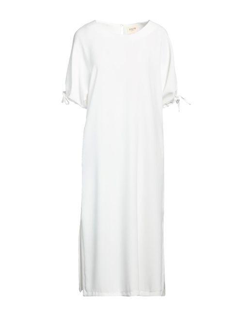 Crepe, no appliqués, solid color, crewneck, short sleeves, button fastenings, multipockets, machine wash, do not bleach, dress , Color: White , Size: M