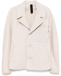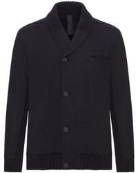 Go to FARFETCHBlack ribbed detailing button fastening shawl lapels chest welt pocket long sleeves Size: M. Gender: Male. Material:Wool. Color: blue