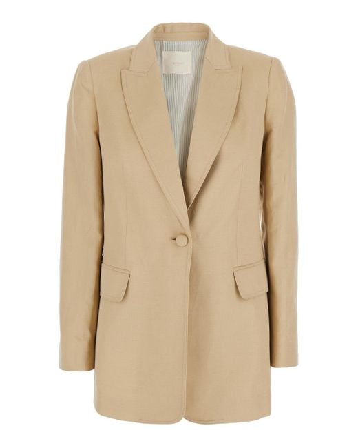 Women's Natural Jacket With Classic Lapels And Metallic Logo On The Back