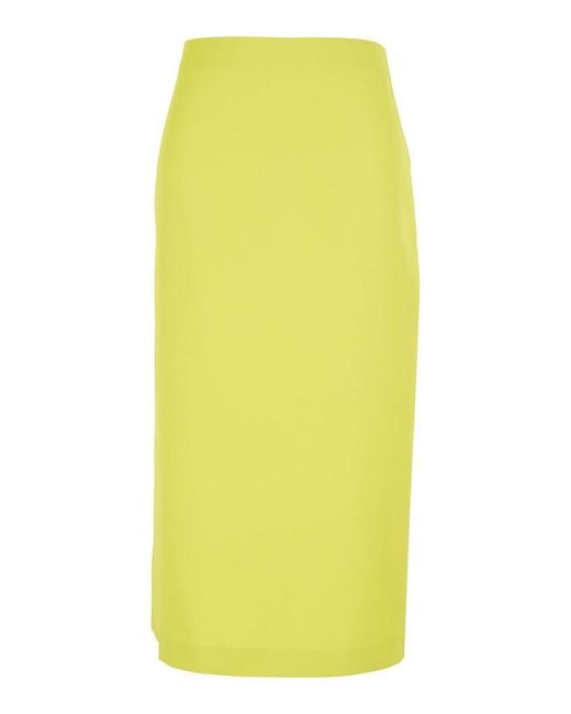 Women's Yellow Skirt With Rear Concealed Zip Closure And Logo Plaque O