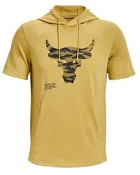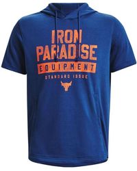 Under Armour Men's White Project Rock Icon Fleece Badge Of Honor Short Sleeve Hoodie