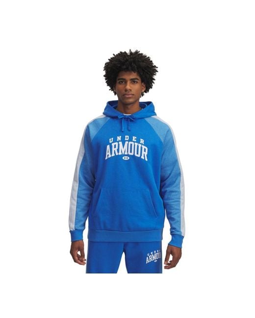 Remain cozy and active in this Under Armor fleece hoodie, designed with a convenient front kangaroo pocket. Ribbed cuffs and a bottom hem provide a snug, secure fit while maintaining flexibility for effortless movement. 80% cotton, 20% polyester. Color: blue