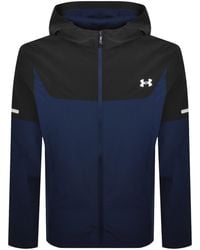 Go to MainlineUnder Armor Tech Utility Woven Jacket In Black And Jasper Blue Loose Fit. A lightweight breathable jacket with UA Storm technology for a water resistant finish. A branded full front zip fastening with