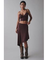 Go to Urban OutfittersGauzy cotton midi skirt from UO. Soft + flowy style with tiers throughout and lace detailing towards the hem. Pull it up or down for a low or high-rise fit. Find it exclusively