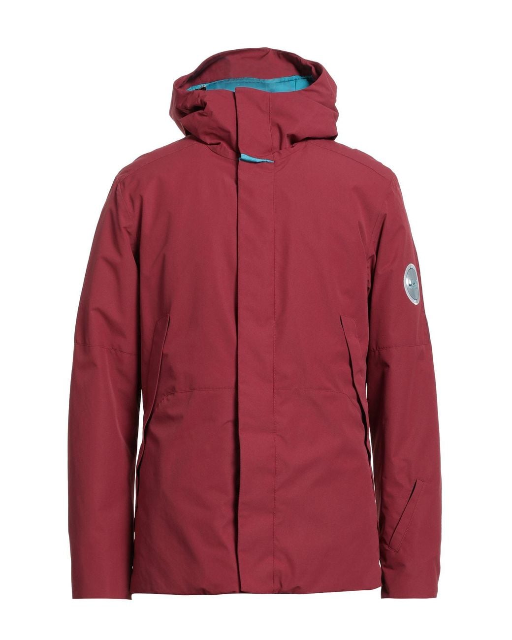 Casual jacket, shell, brand logo, solid color, hooded, long sleeves, synthetic filling, lightweight padding, zipper fastening, zipped pockets, machine wash, do not bleach, do not tumble dry , Color: Burgundy , Size: M