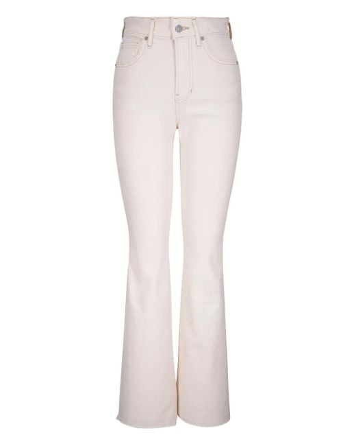 White concealed fly and button fastening belt loops classic five pockets flared Size: 25. Gender: Female. Material:Polyester/Polyurethane/Cotton. Color: white
