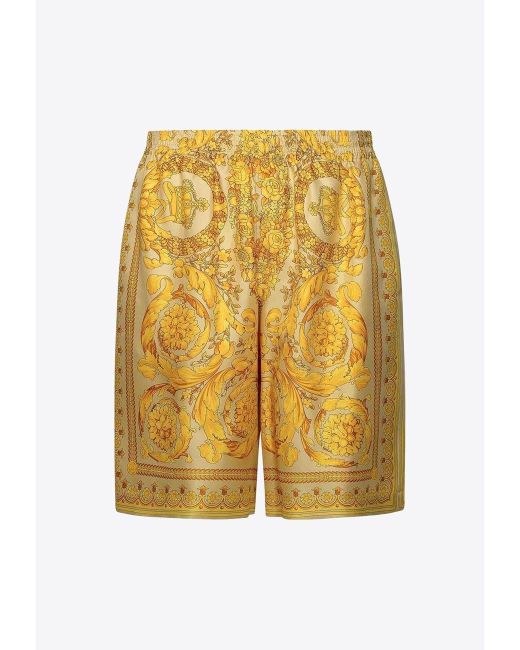 Barocco-Print Silk Shorts With-Tone Accents - Yellow