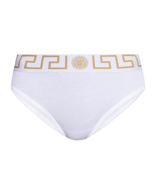 Introducing the Greca Border Briefs from Versace, a perfect blend of traditional cut and modern luxury. Crafted from smooth cotton, these briefs ensure maximum comfort and style. Key attributes: White | Cotton | Golden Greek Key motif on waistband | Golden Medusa head logo on front waistband | Dimensions & fit: Classic full coverage fit | Composition & care: 100% Cotton | Machine wash cold, tumble dry low. Color: white