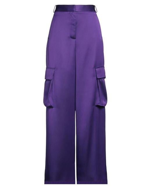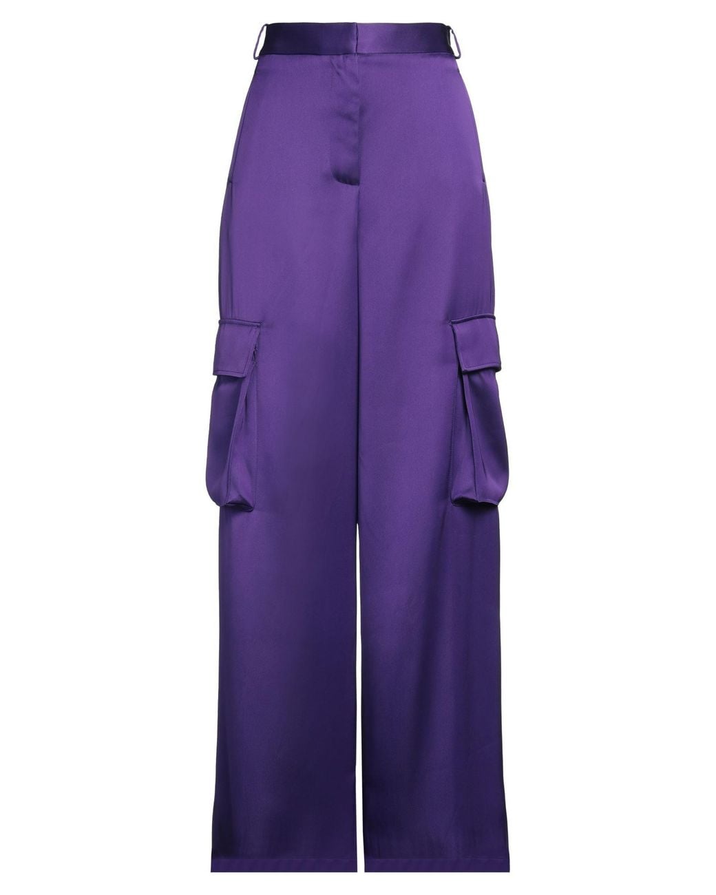 Cargo pants, twill, solid color, no appliqués, high waisted, belt loops, regular fit, zipper fastening, hook fastenings, multipockets, dry clean, do not bleach, do not tumble dry , Color: Purple , Size: 2