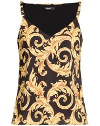 Go to YOOXVERSACE. camisole, synthetic jersey, stretchy fabric, signature print, brand logo, deep neckline, sleeveless, fully lined, dry clean, do not bleach, do not tumble dry. 93% Polyester, 7% Elastane. Color: pink