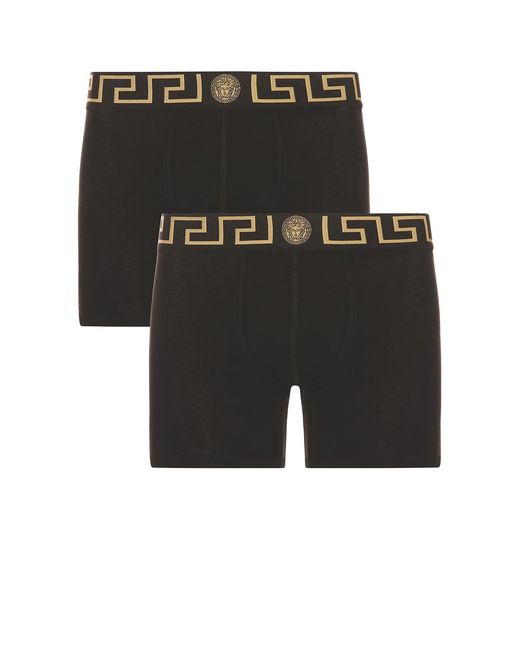 VERSACE Trunk Bi-Pack in Black 94% cotton 6% elastane. Hand wash. Set of 2. VSAC-MI14. AU10192_1A10011. About the designer: Since 1978, Gianni Versaces iconic Italian label has been celebrated for its over-the-top glamour and sexiness. After Gianni's tragic death in 1997, his sister Donatella took the creative reins, and while remaining consistent with Gianni's design aesthetic, Donatella has brought a bold femininity and subtle polish to the beloved design house.