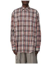Vetements Men's Red Plaid-pattern Long-sleeve Shirt