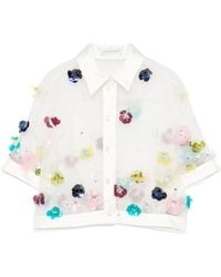 Go to FARFETCHBlack silk semi-sheer construction floral-shaped sequin embellishment front button fastening cutaway collar short sleeves straight hem cropped Size: XS. Gender: Female. Material:Silk/Acrylic/glass/Acetate/Polyester/Elastane/Polyamide. Color: black