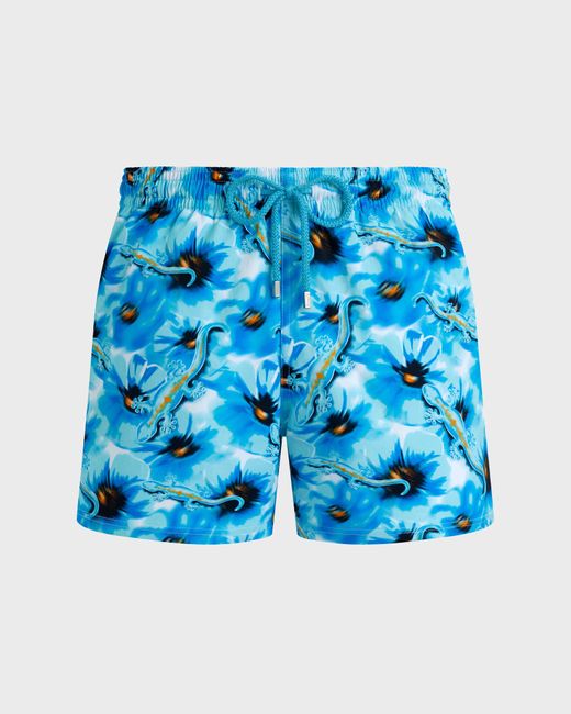 Men's Blue Stretch Short Swim Shorts Poppies And Geckos