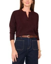 Vince Camuto Women's Red Cozy V Neck Dropped Shoulder Sweater